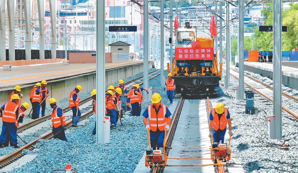 西延高铁穿越黄土高原沟壑区,全线桥隧比高达91%。施工过程涉及长大坡道铺轨地段16处,最大坡度比达30‰,铺轨施工难度大、工期紧,作业精度要求高,交叉施工作业频繁。截至目前,西延高铁路基、桥梁、隧道和无砟轨道等重点施工任务已全部完成,新建8座站房基础和主体结构全部完工,后续将重点做好“四电”施工、静态验收、联调联试等,为开通运营做好准备。