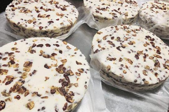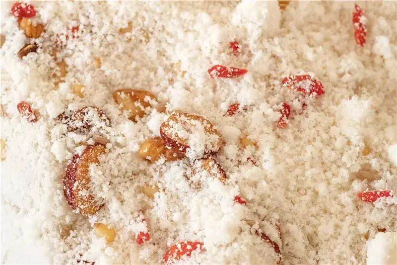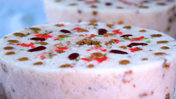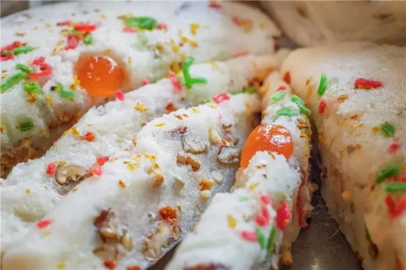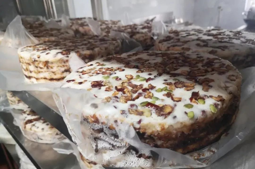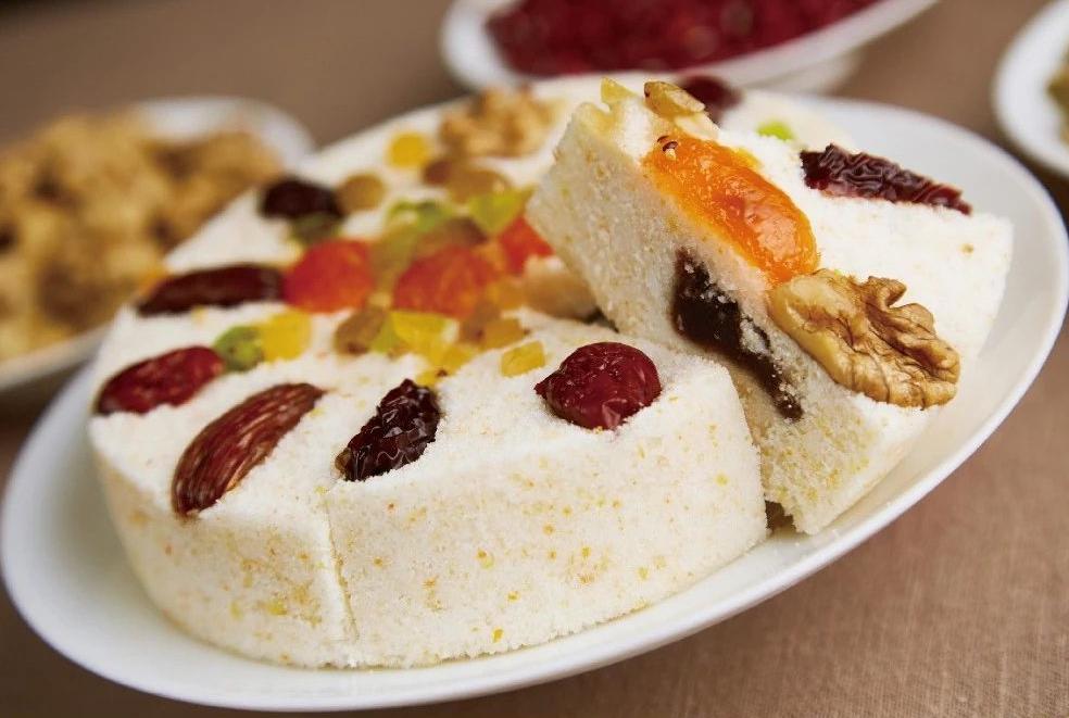 还热乎的桶蒸糕入口软糯香甜不粘口舌,只凭一股天然的食材香气便让人欲罢不能,每一口糕中都能尝到丰富的果仁、果干,清甜不已。