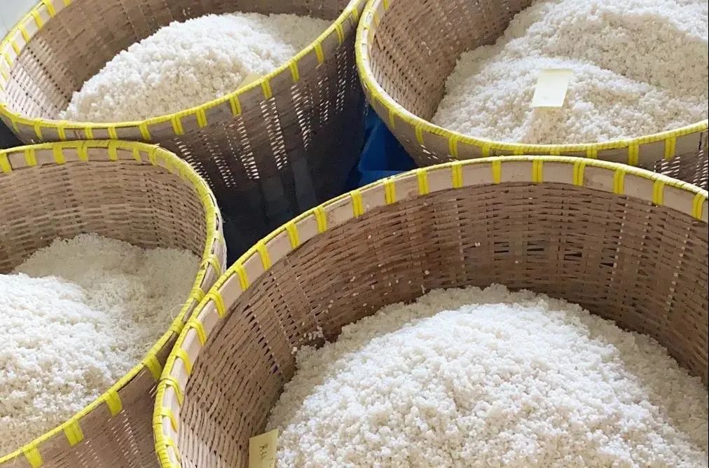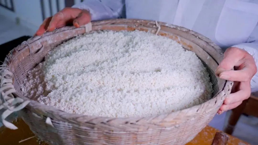 徐行蒸糕是以糯米和粳米混合,经浸米、淘米、磨米、筛粉、拌糖水、擦粉蒸煮等七大步骤制作而成。