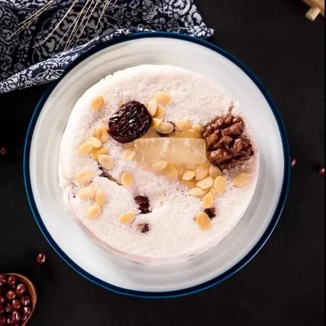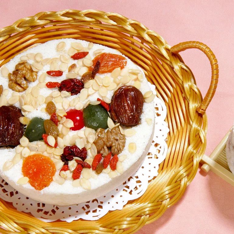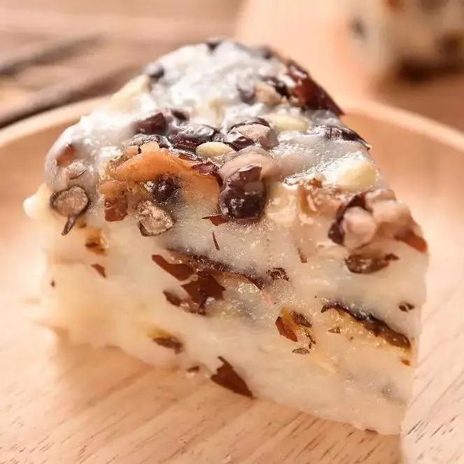 并加以糖、枣子、蜜饯、核桃仁、松子、瓜子、红绿果脯丝、桂花、猪油、赤豆等辅料蒸煮而成。