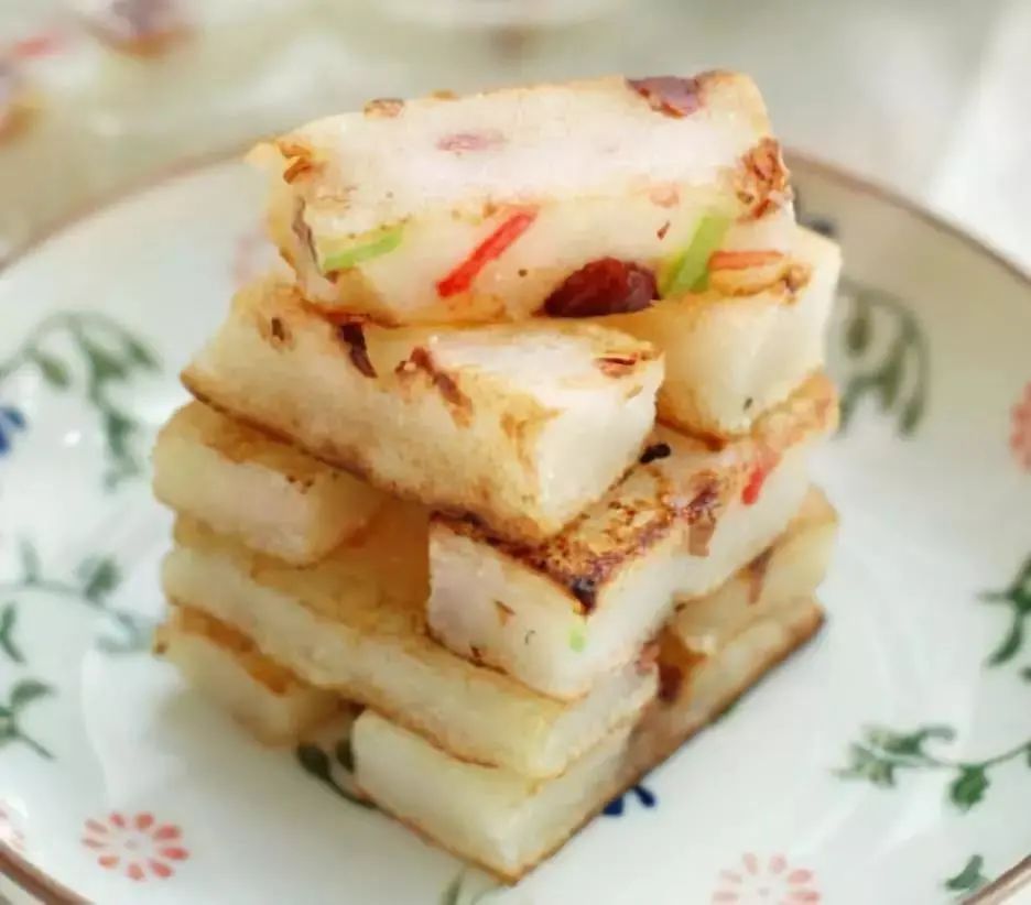 一般来说,崇明糕都是圆形的,既重且厚。需要切成二厘米见方、十厘米长的糕丝后再食用。