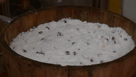 叶榭软糕原料选用当地优质粳米、糯米,按比例配制而成。这两种米要在冷水中浸泡7天以上,每天换水,使米发酵成分全部挥发完。