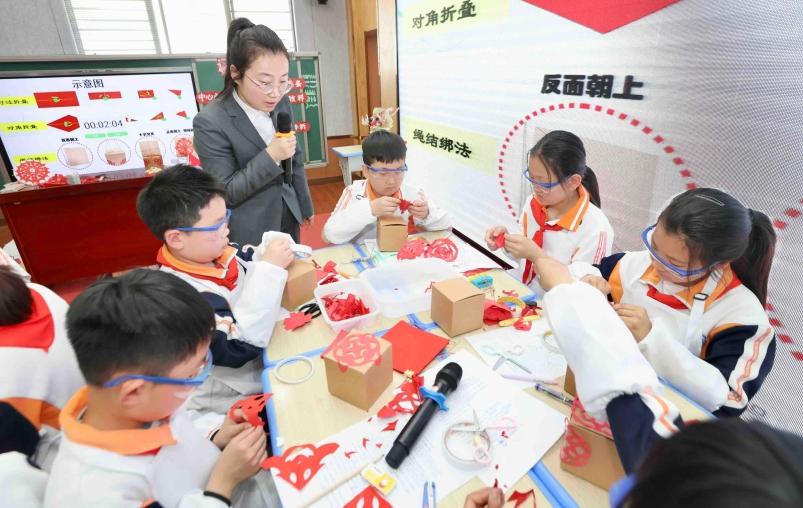 图为一级教师、陕师大实验小学“名校+”劳动教师靳宝进行授课。