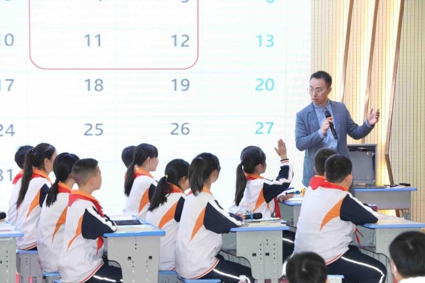 图为陕西省教学能手、陕师大实验小学“名校+”数学教师颜超进行授课。