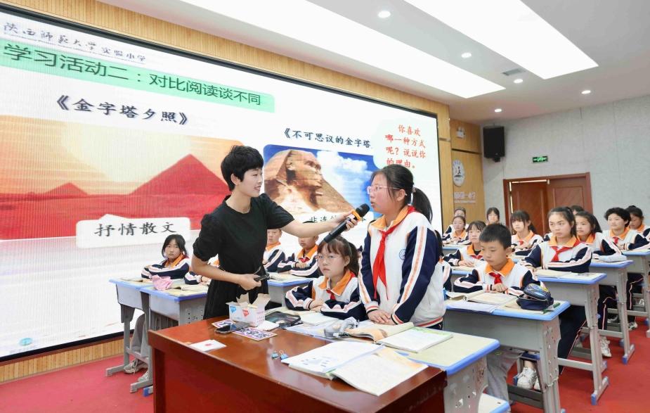 图为陕西省教学能手、西安市骨干教师、陕师大实验小学“名校+”语文教师邢娟进行授课。