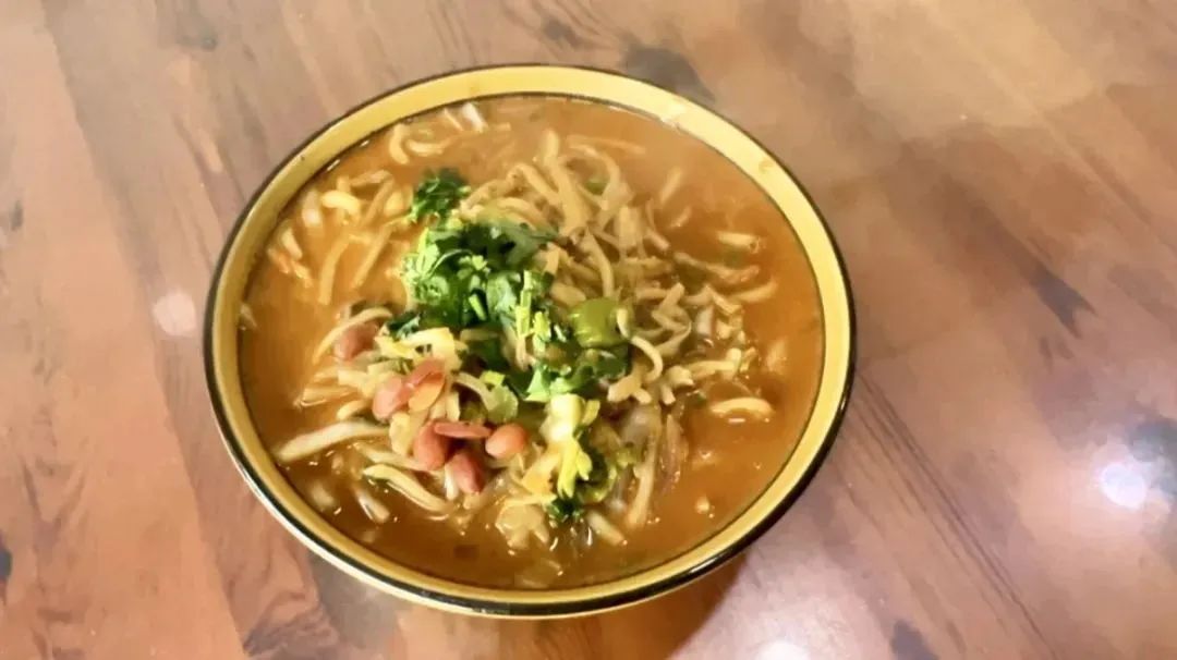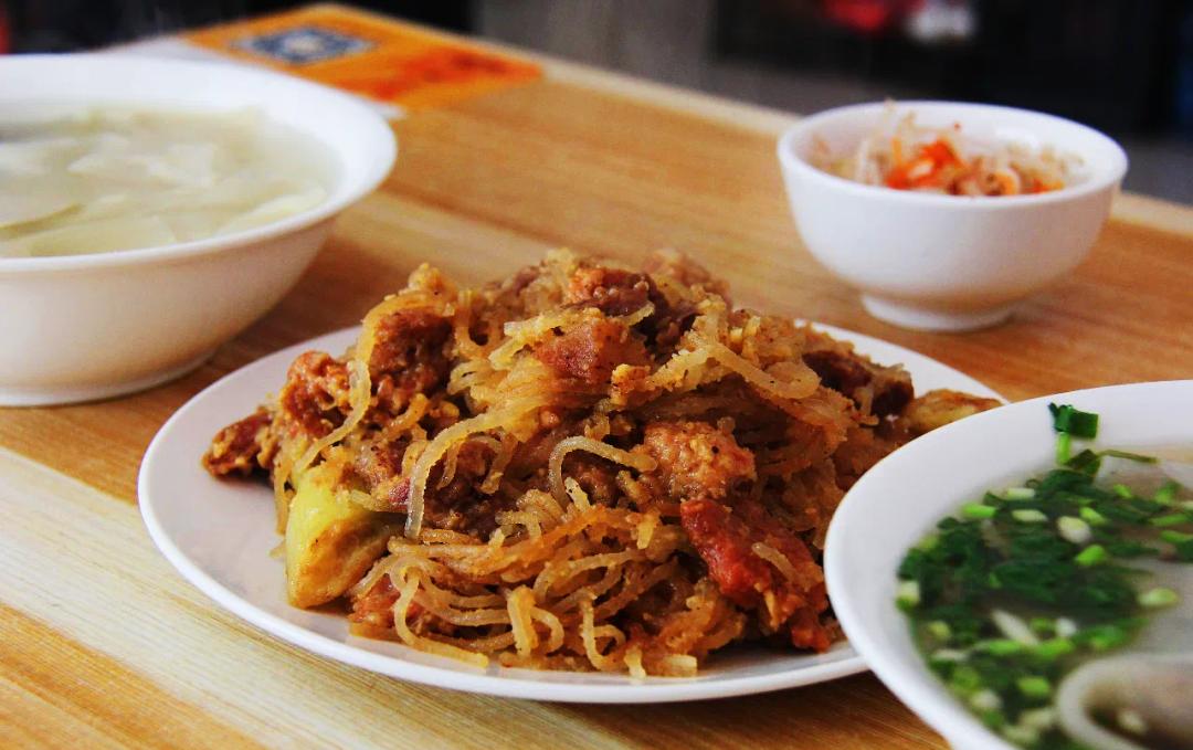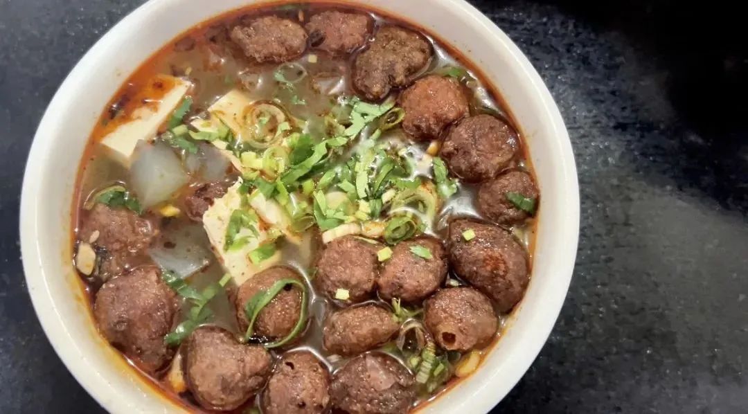 洛宁老字号凉粉汤,汤底由大骨熬制而成,鲜香浓郁,凉粉是用绿豆粉制成,滑溜劲道。盛上满满一碗汤,再加入刚从油锅中捞出来的焦炸丸子,放点秘制牛油辣椒,配上现烙的烧饼,令人食欲大增,一碗下肚,回味无穷。
