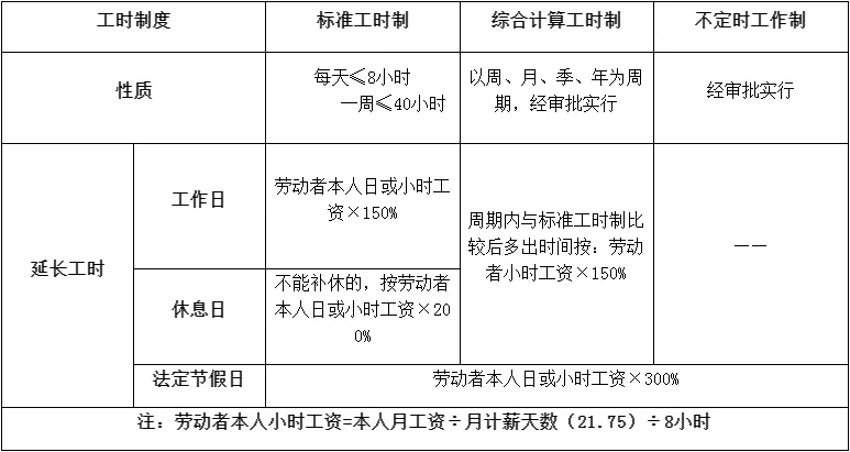 那么,不同工时制度,加班工资都怎么算呢?大家可以参考下表: