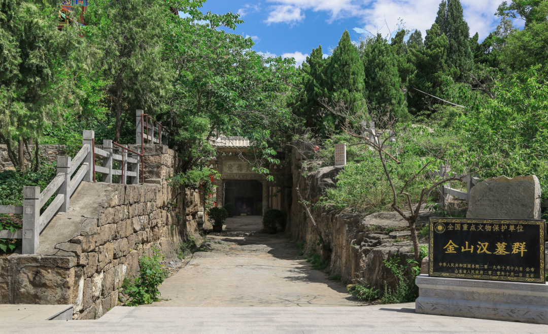金山是一座颇富盛名的历史文化名山,属泰山余脉,相传与泰山、峄山并称为姊妹三山,金山崖墓又称秦王避暑洞,凿山为陵,规模宏大,后经专家考证,此墓为西汉昌邑王、汉代第九位皇帝、海昏侯刘贺的废冢。
