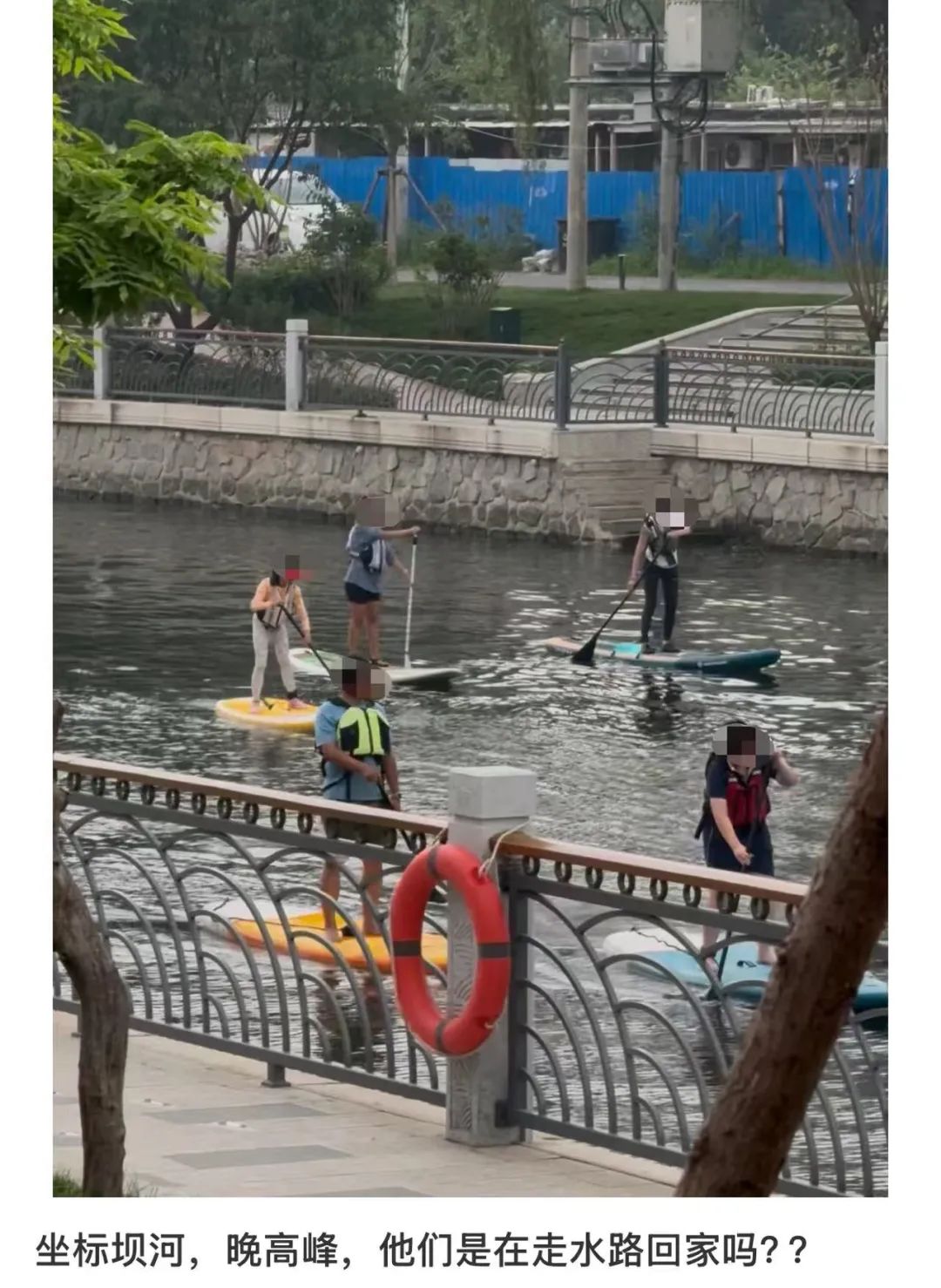 但是,现在不一样了,“北京滨水体验越来越好了,全面进入装备时代——皮划艇、桨板成标配,甚至有人开始走河道划船回家,直接杀死晚高峰。”