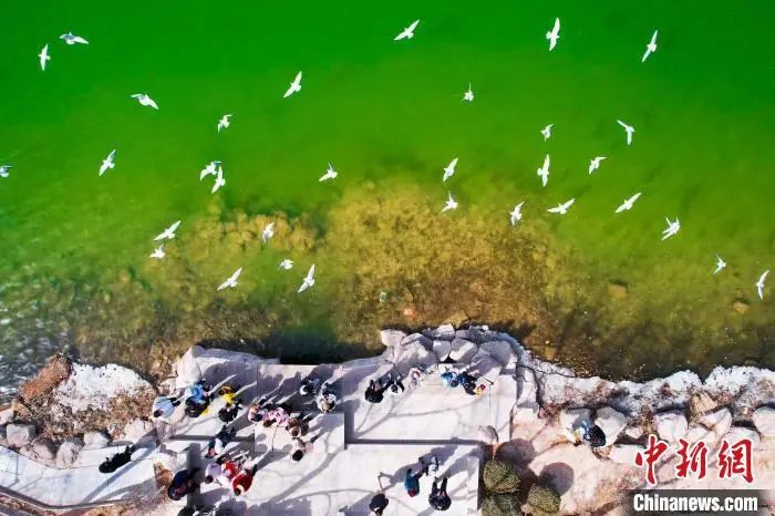 红嘴鸥吸引市民游客驻足观赏。马楠 摄