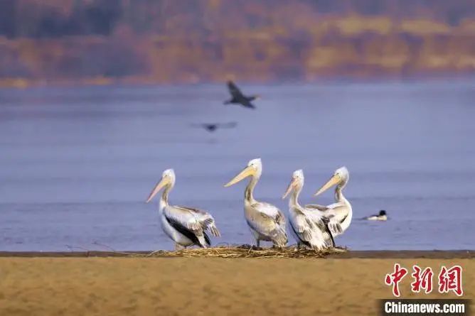 国家二级保护动物卷羽鹈鹕光顾银川。宁夏湿地保护管理中心供图