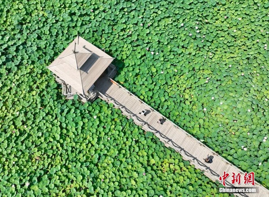 银川市鸣翠湖国家湿地公园绽放的荷花。于晶 摄