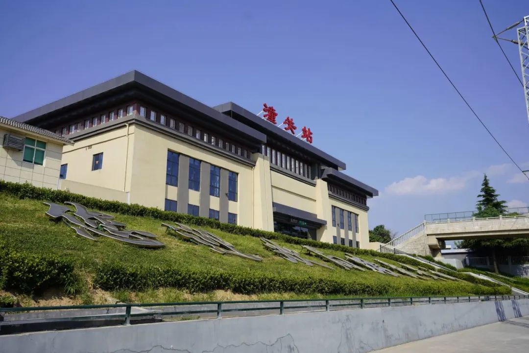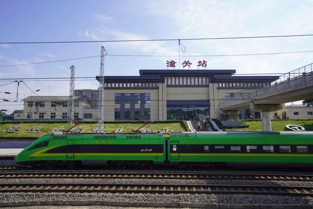 潼关站位于陕西省渭南市潼关县城关镇境内,是陇海线上的三等客货运站。1931年,陇海铁路修到潼关境内,在潼关设站,这是陕西境内建成最早的火车站。同年12月,潼关火车站首次接发徐州—潼关的特别快车,开启了陕西境内铁路客运的先河。1960年,陇海铁路改线后新建的复线正式通车,新建的潼关火车站同时启用。2021年,在现址基础上,潼关站实施站改工程,新建候车室、高站台,开行复兴号动集动车组列车,车站出行环境焕然一新。