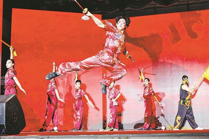 高殿社区带来的非遗表演《厦金宋江阵》,获得群众阵阵掌声。