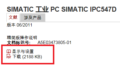 打开手册链接后,在页面上可以点击“显示与设置”在线浏览手册,或者点击“下载”直接下载PDF文件。