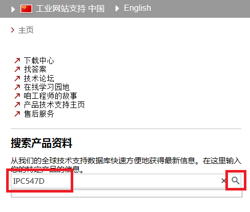 在搜索产品资料栏中输入产品型号或者订货号。