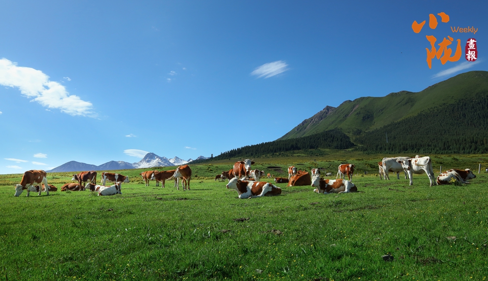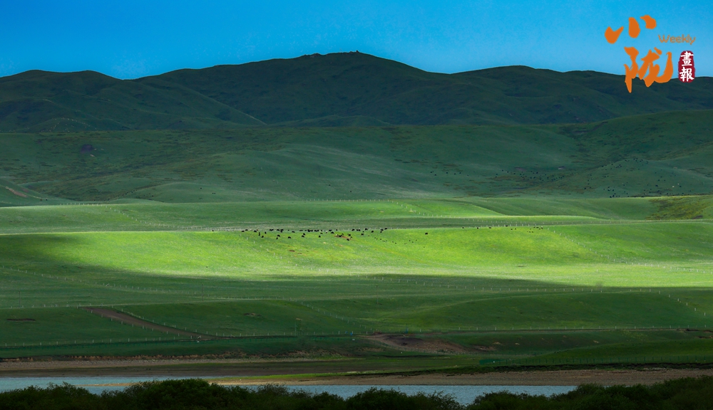 一眼望去,青色的山坡舒展如画,似一块巨大的绸缎铺至天边。羊群的动感之美、风的味道、云的姿态、星空的低语、自由奔放的生命,一起构成草原最独特的气质。