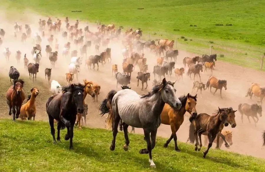 山丹军马场马群奔腾,
