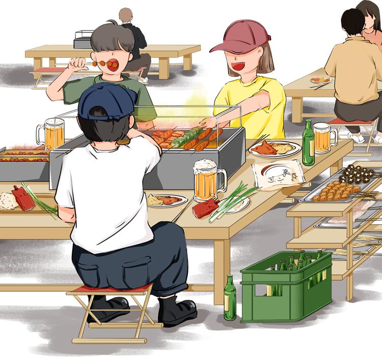 一起享受烤串、炒拨拉