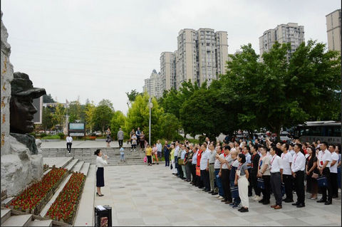 图为参加活动的代表在张思德纪念馆开展“不忘初心  牢记使命”主题微型党课,增强宗旨意识。