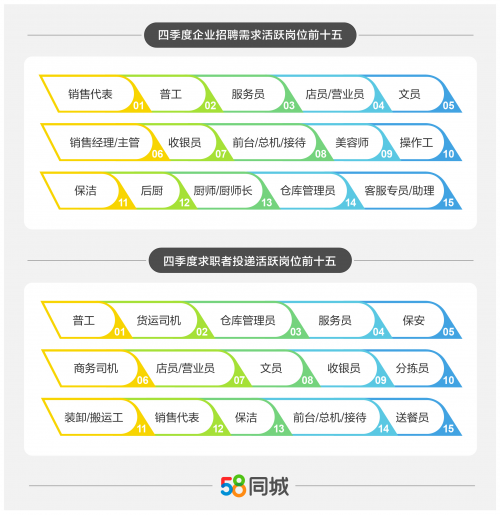 随着技术的进步,制造业的转型升级加之政策上的倾斜,使生产一线的科技含量、工作环境都有很大提升,打破了大众到制造业工作就是“进厂打螺丝”的刻板印象,“进厂”逐渐成为热门就业选择。58同城数据显示,普工成为四季度求职活跃度最高的岗位。