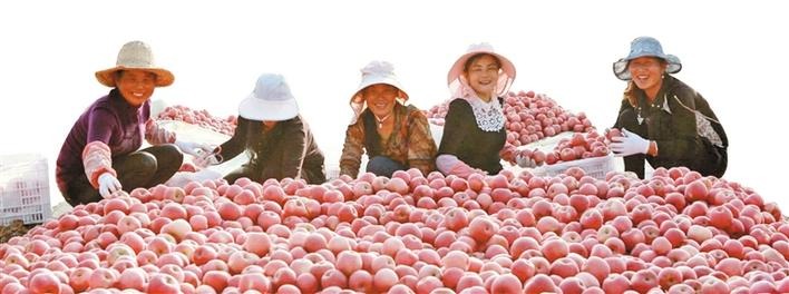 东南镇梁甫村贫困群众采收苹果。 本版照片均为资料照片