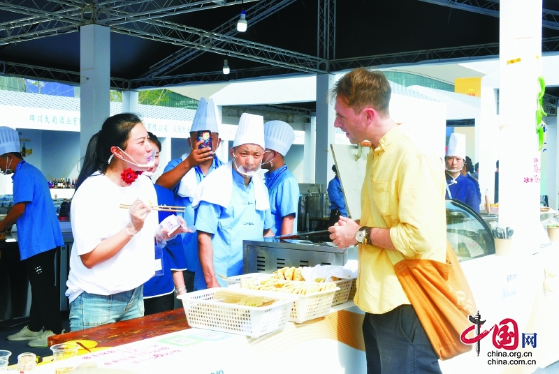 大山香米、客家牛肉、德乡嫂皮蛋、德懋菜籽油、银明黄酒、客家擂茶、王妈手撕烤兔……在仪陇展区现场,琳琅满目的特色农产品及旅游商品令人目不暇接,香气四溢的小吃令人垂涎欲滴。众多参观者和客商纷纷前来品尝、咨询、购买。