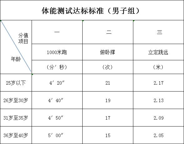 3.报名资格审查合格人员携带本人身份证统一参加体能测试,体能测试由第三方组织实施,具体项目包括男子组(1000米跑、俯卧撑、立定跳远)、女子组(800米跑、仰卧起坐、立定跳远),测试成绩达标的进入笔试环节。体能测试结果在迁安市人民政府网事业单位招聘专题和公安局内网公布。