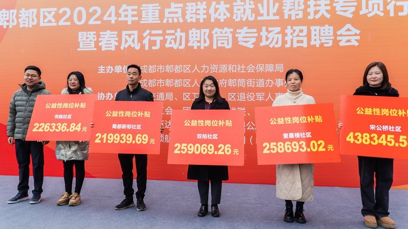 (刘刚钰 记者 陈淋)3月1日,成都市郫都区人社局联合郫筒街道办事处,在位于郫筒街道的蜀都万达广场,举办2024年郫都区重点群体就业帮扶专项行动启动仪式暨春风行动郫筒专场招聘会。