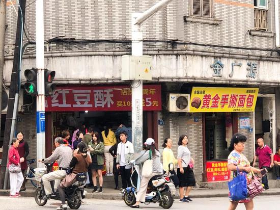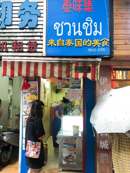 这家在拐角的泰国红豆酥,每次去都排着长队,就算赶上第一趟,该排多久还是排。这家店在这里做了很多年,来往的皆为熟客,有妈妈带着小朋友,一看到老板就说:“爷爷,我来啦!”