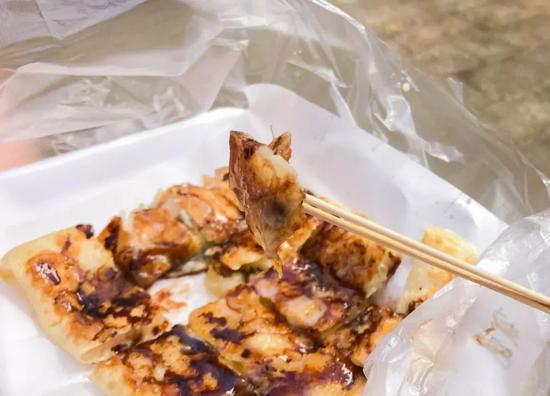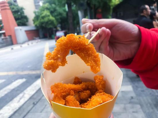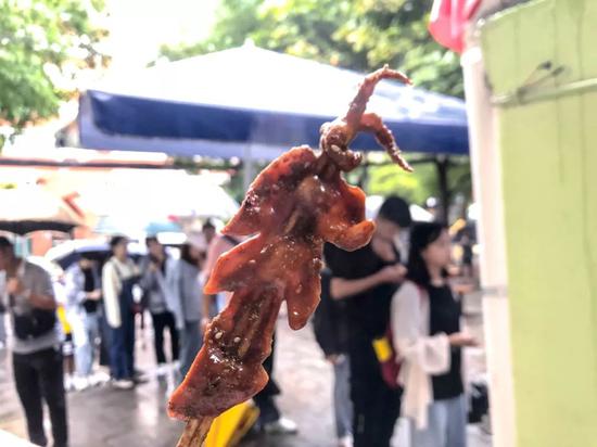 这家的鱿鱼不仅鲜,酱汁也足够入味实在,大部分人一买就是几十串起,拿到站在旁边就吃完。据在旁边学校读书的同学说,这家店开了很久,每天生意都很好,是历经了很多届学生的优质学校小摊,值得每天都来打卡。