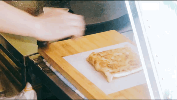 从糯米包油条,不难理解这其中的奥义,成团的糯米被压成饼,上面撒上一层甘甜的黄豆粉、桂花糖还有山楂碎,包裹刚炸好的油条,用力一卷,“汉式手握”就这样诞生了。