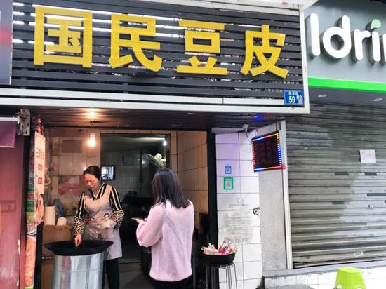 国民豆皮光是名字就显得特别,谁家豆皮做不好敢叫这个名字?去的时候老板正在做新的一锅,豆皮在滚烫的锅里被烧的刺啦刺啦响,之后切成方形售卖。