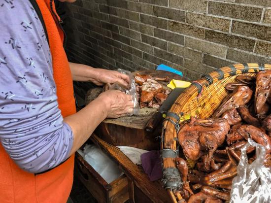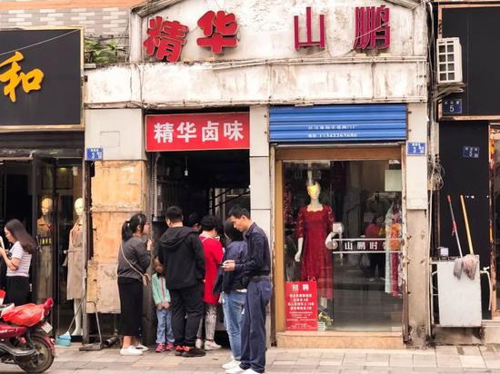 11点门可罗雀,12点就开始排起长队,幸好我提前付了钱,不到20分钟,两筐鸭全部卖完。来买的大多都是住在附近三四十年的老居民,还有从小到大都吃他家卤味的年轻人。