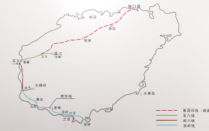 宋子文返京后,在商议重新修筑浙赣铁道时,就打算利用浙赣铁路抽下来的旧轨移作环琼铁道使用。民国26年(1937年),民国政府铁道部派人来琼勘察,订立了琼崖建设计划大纲,经勘测决定先修筑东岸线,起点从临高县的马袅港经过澄迈、琼山,抵达海口,再出文昌,经加积、陵水而至榆林,全长361公里。另一条从西岸线经过福山、和舍到那大,全长67.2公里,统称环岛铁路。