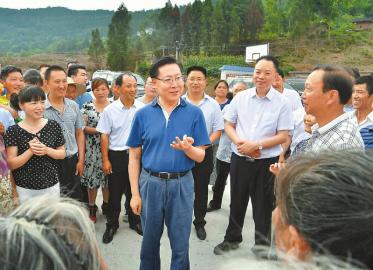 六月十九日,省委书记王东明来到仪陇县新政镇金鸡山村调研督导脱贫攻坚工作,与当地群众亲切交流。记者毛漫丁摄
