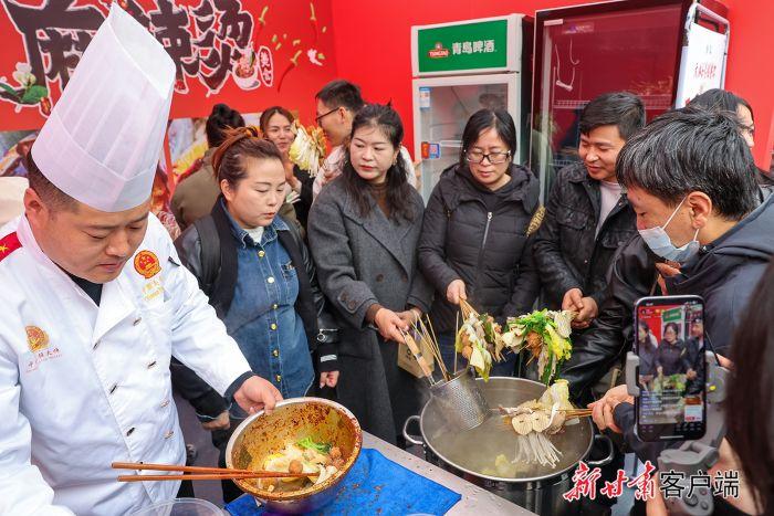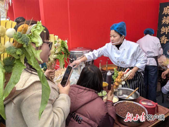 来自青海西宁的游客王梅专程赶来参加天水麻辣烫“吃货节”。在“麻辣烫体验区”的一个棚内,她拌出一碗色香味俱佳的麻辣烫,并热情地邀请身边排队的游客一起品尝。“昨天到天水后,我吃了擀面皮、酸辣里脊等特色菜品,但还没品尝火爆全网的天水麻辣烫,专门留着今天和来自五湖四海的朋友们一起畅意品尝。”