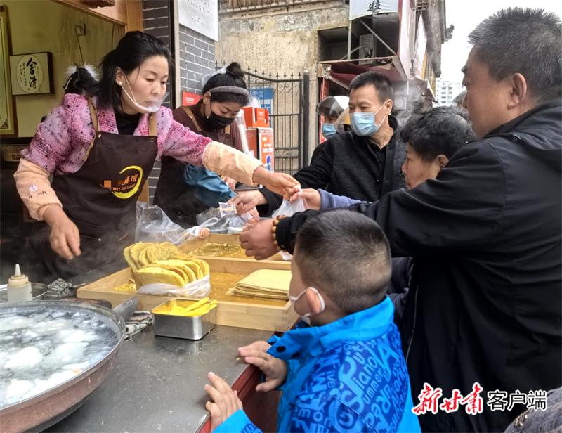距离天水古城不远,是坐拥众多美味早点的秦州区育生巷历史文化街区。美食“排队”等出锅,人们排队等美食:杏仁茶熬煮得丝滑香甜,一颗颗荷包蛋在沸水里散成朵朵白花,猪油盒压着热油嗞嗞作响……