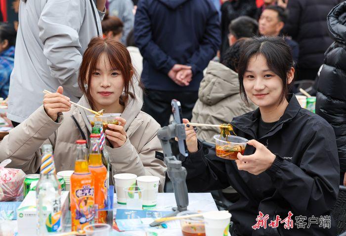 吃罢一碗热辣鲜香的麻辣烫,不少顾客选择再来一份爽口的擀面皮。“陕西人大多爱吃面食,来到天水这两天,每天除了尝试不同店里的麻辣烫,我们还喜欢吃这边的擀面皮,味道美得很。”陕西渭南市民郝少迪和家人、朋友一行11人,自驾至天水赴美食节会,他们尽情享受着天水的美景美味。