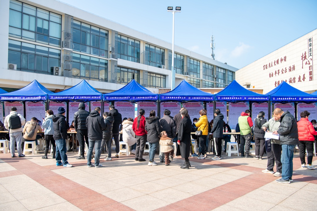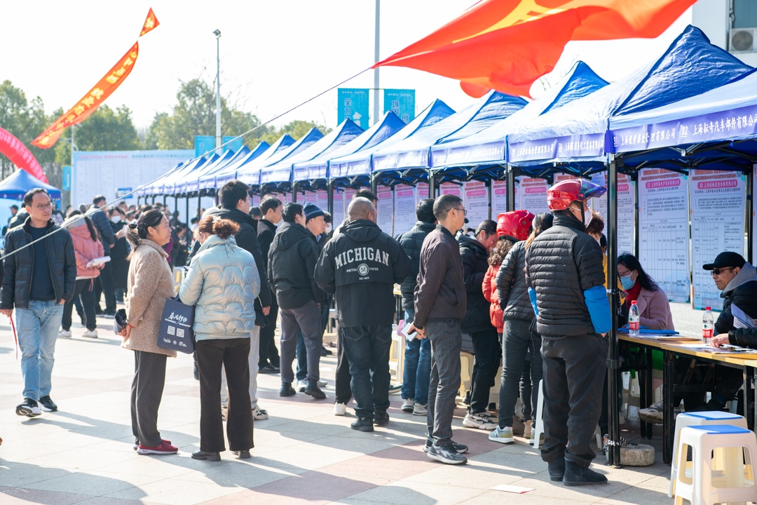 这是漕泾镇今年以来首场大型线下招聘会。此次招聘会共有58家企业,招聘1100余人,包括工程师、采购员、普工、操作工、安保、销售、文员等多个职位,涉及化学化工、新型材料、医疗器械、酒店服务、文化传媒等多个行业。现场还通过广播形式播放相关招聘信息,方便求职人员选择岗位。
