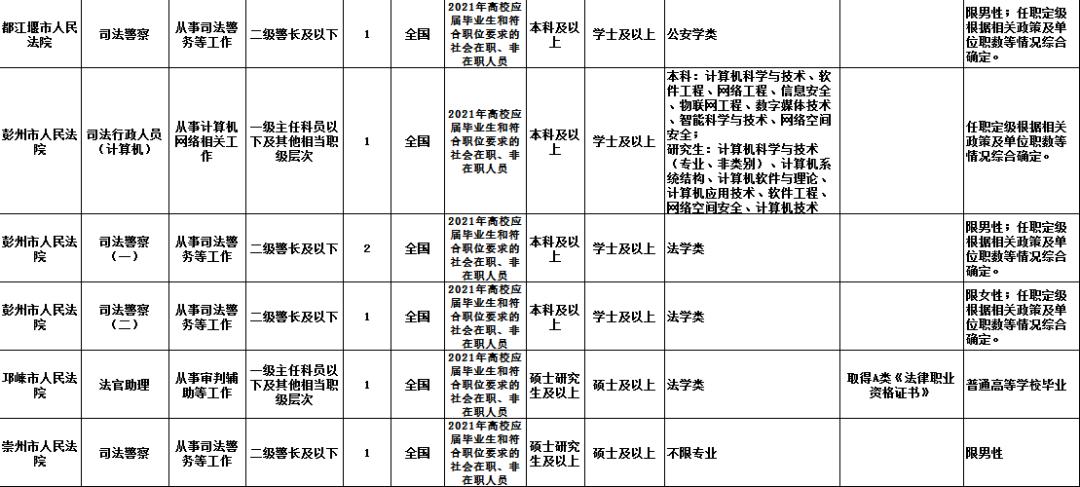 3.报考司法警察职位的人员,年龄在18至30周岁(1989年10月30日至2002年10月30日期间出生),2021年应届硕士、博士研究生(非在职)年龄可放宽到35周岁(1984年10月30日以后出生);报考法官助理职位的人员,年龄在18至35周岁(1984年10月30日至2002年10月30日期间出生);报考其他职位的人员,年龄在18至35周岁,2021年应届硕士、博士研究生(非在职)年龄可放宽到40周岁(1979年10月30日以后出生)。