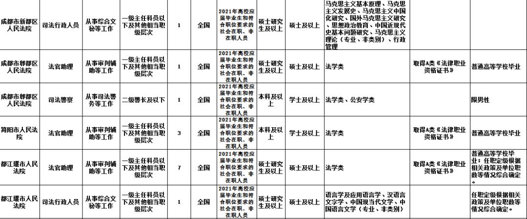2021年高校应届毕业生和符合职位要求的社会在职、非在职人员。其中,应届硕士及以下毕业生一般应于2021年7月31日前取得相应学历学位证书,应届博士毕业生一般应于2021年12月31日前取得相应学历学位证书;其他人员应当在面试资格审查前取得相应学历学位证书。职位要求的其余资格证书(法律职业资格考试成绩单不视为取得法律职业资格证书)也应于面试资格审查前取得。未在规定时间内取得有关证书的,不予进入下一步考录环节或不予录用,责任由本人自负。