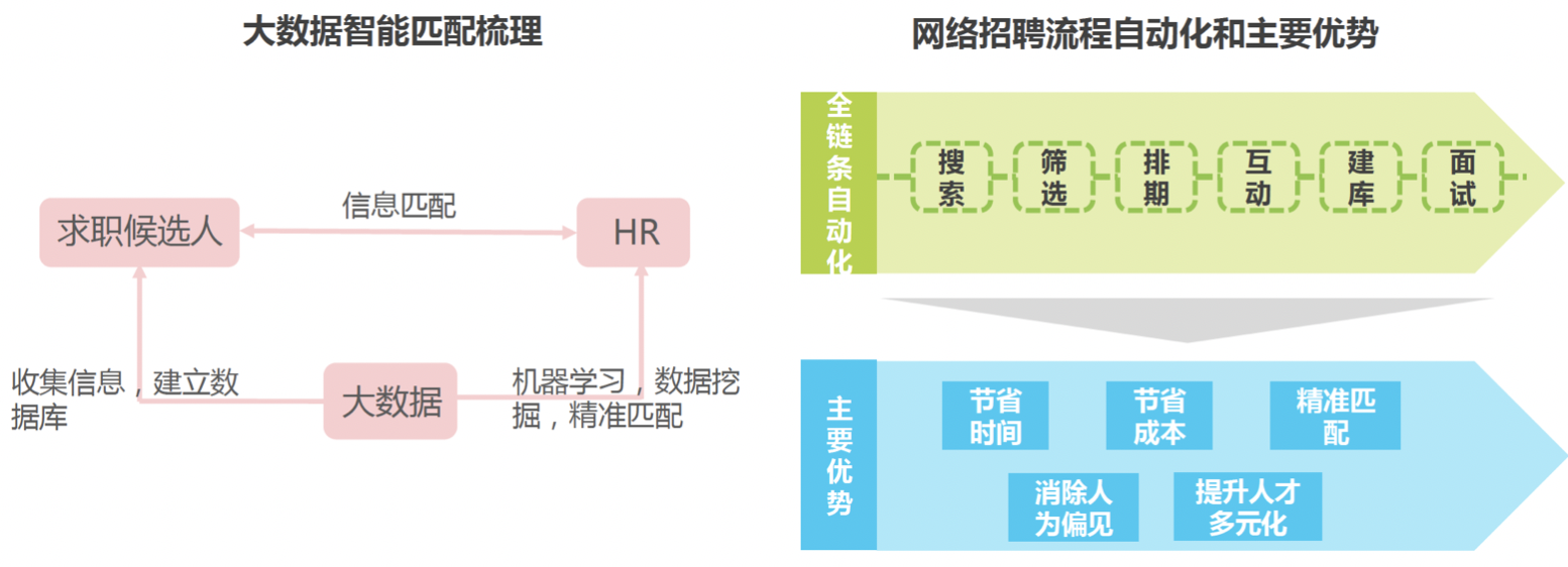 大数据完成智能匹配,AI助力招聘自动化。随着人工智能技术和大数据的不断发展和完善,其在网络招聘中的应用也逐渐深化。