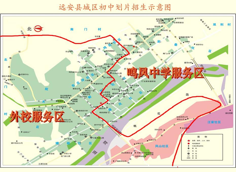 远安外校:北门村;凤山社区;嫘祖社区;航天社区;东庄坪社区;栖凤社区大桥路以北区域;解放社区东门路-仓院巷-凤德路以北区域;鸣凤社区友谊巷以北区域;三江集团;旧县镇;嫘祖镇。