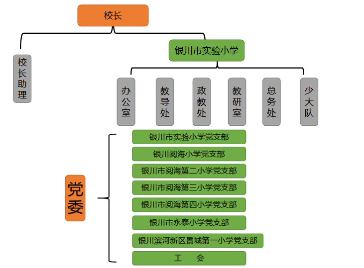 银川市实验小学成立于1920年,地处银川市兴庆区前进街7号。学校承担优质教育资源扩面的历史使命,实施集团化办学,是宁夏回族自治区最大的教育集团。截止2021年9月,共有九个校区,分别为实验小学总校、阅海一校区、阅海二校区、阅海三校区、阅海四校区、永泰校区、滨河校区、金凤六街校区、金凤二十四小(和源)校区。现设党总支书记1人由校长兼任,下设8个党支部,党支部书记由各校区校长兼任。