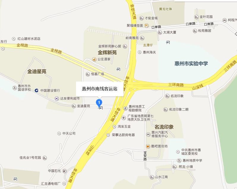 公交站:(最近的公交站是南线汽车站(金迪星苑)),此外附近还有南线客运站、七〇三地质队、惠环市场站、惠环市场站等。