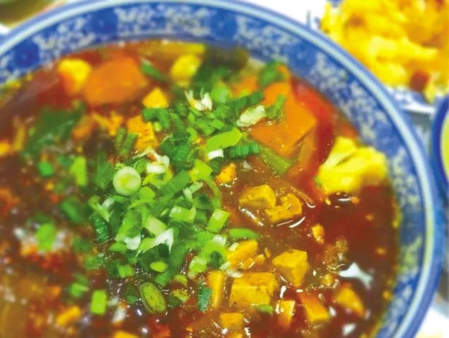 吃完麻面片再细细品尝汤,舌尖上有点麻麻的辣,再一回味,辣中带着香,满口都是鲜美的味道。尤其上了年纪者,喝汤拿碗的架势,喝汤下肚的声音,喝汤舒畅的表情,让人感受到飘飘欲仙,“汤,还真的香!”