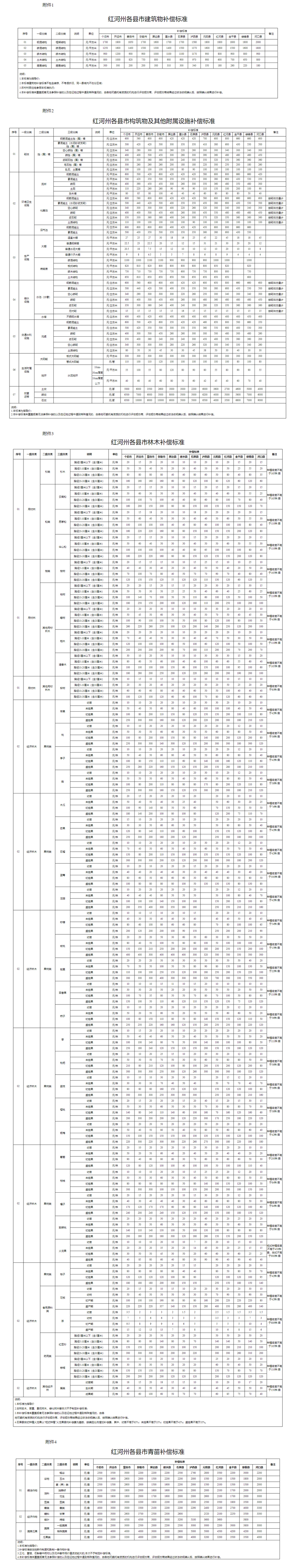 附件:1. 红河州各县市建筑物补偿标准