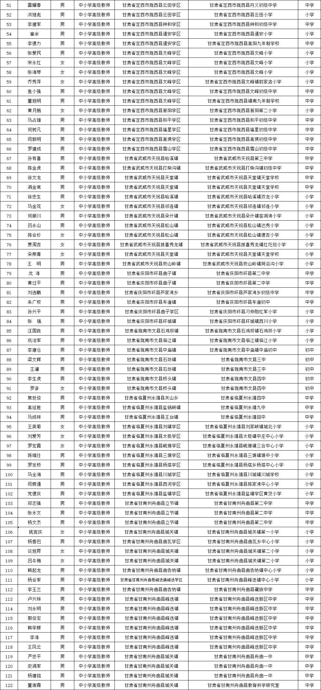 122人!甘肃7县乡村中小学首席教师拟聘人员名单公示!