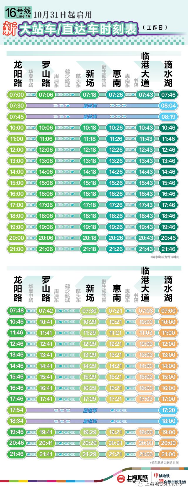 上海地铁16号线大站车时刻表(工作日+节假日)